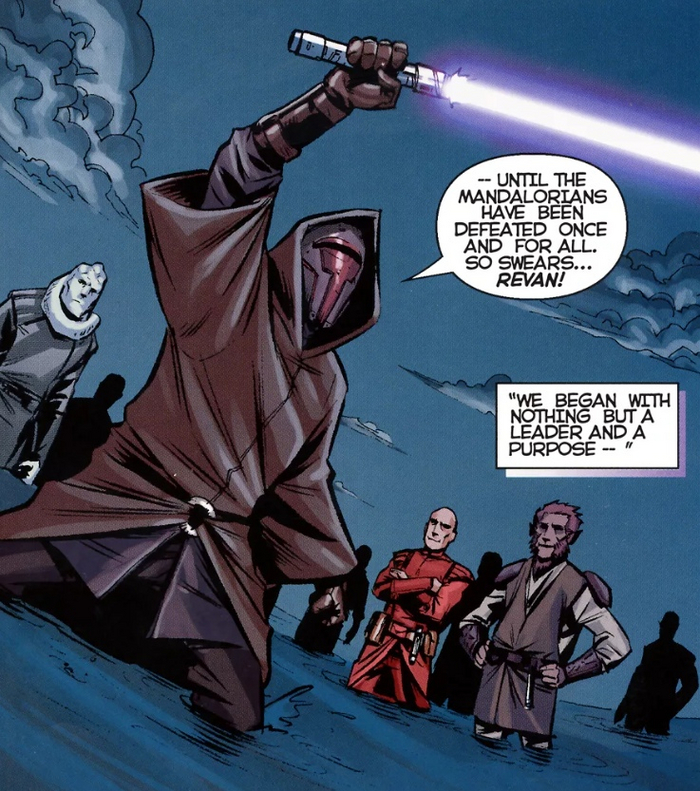 Мандалорцы были абсолютно прагматичным врагом, не скованные ни общепринятыми нормами морали, ни законами войны, и они могли делать всё, ну или почти всё, что необходимо для победы. Чтобы победить такого врага, нужно было самому стать таким же. Республиканские военные так не могли, связанные по рукам и ногам законами, предписаниями, моралью и политической целесообразностью, а потому были неспособны победить. Джедаи и подавно, но Реван совершенно по-своему понимал долг джедая, считая, что тот должен сделать всё, чтобы спасти Республику. И Реван был готов – он принял правила игры, постепенно отринув всё, что не давало победить, даже если это были впитанные за время бучения в ордене истины. И, что ещё важнее, он сумел убедить своих сторонников в верности своего видения.