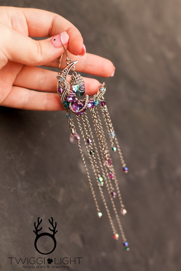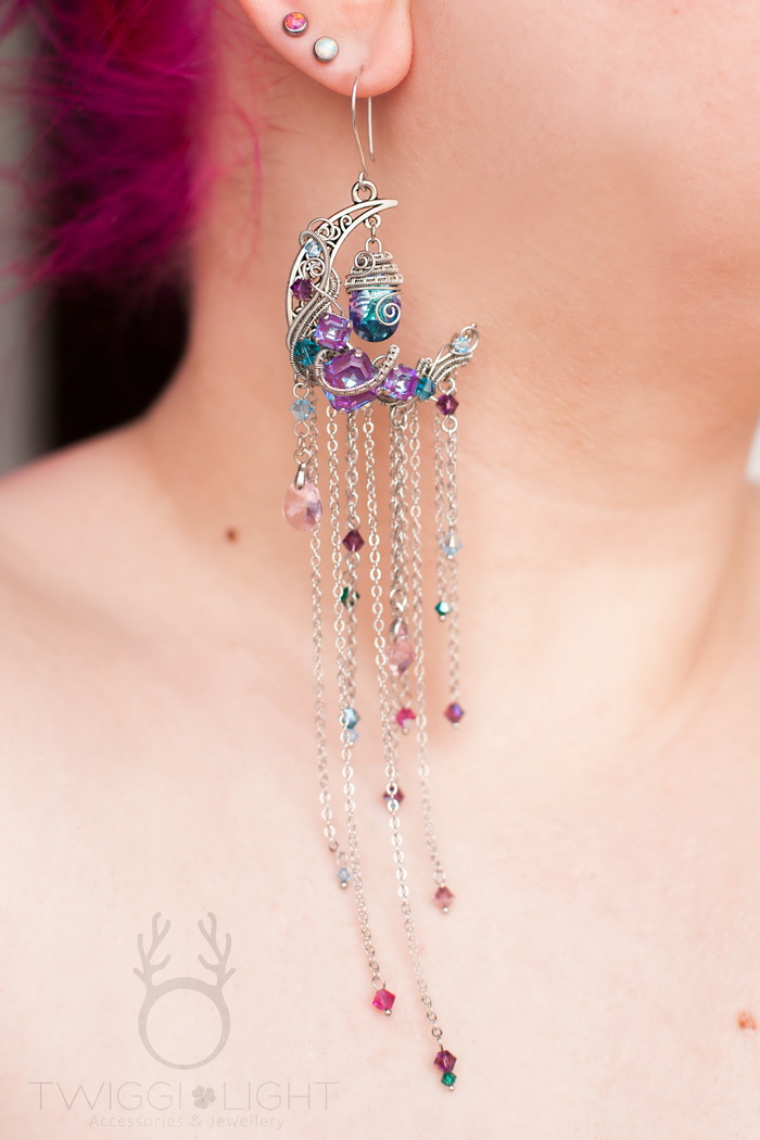 Мои уши забиты титановыми лабретами, поэтому у меня всего один свободный прокол, в котором я могу носить серёжки. Всё чаще я стала покупать серёжки по одной у разных мастеров, всё чаще стала распаривать свои комплекты... и наконец позволила себе сделать моно-серёжку. Одну. Просто серёжка без комплекта, сама по себе, своя собственная :)