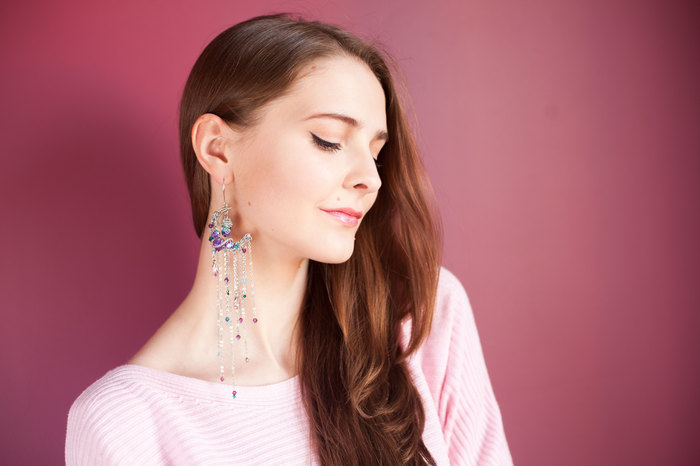 Продолжаю серию моно-серёжек, на этот раз вариант полегче, уже 15 грамм против 17 в серёжке с крестом (https://pikabu.ru/story/monoserga_s_krestom_6655422). Длинная, шуршащая, яркая - то, что надо на грядущее лето :)