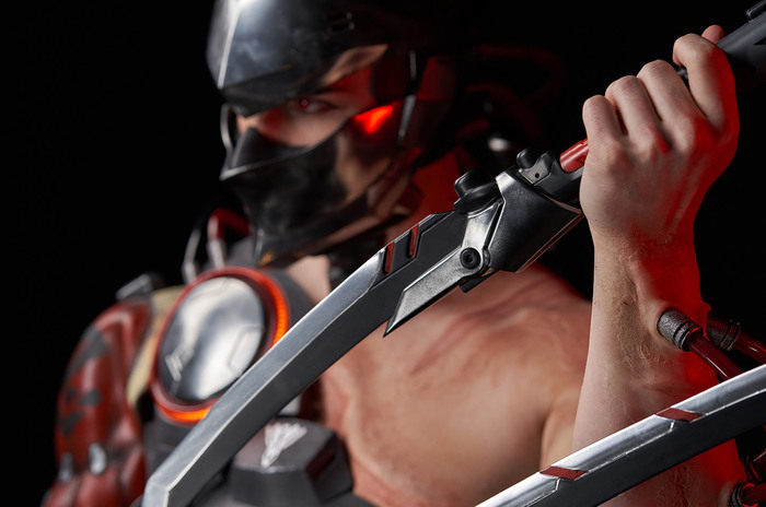 Команда Италии замечательно сумела передать сочетание органических и кибернетических элементов облика Гэндзи «Blackwatch» и в том числе воссоздала его Клинок дракона.
