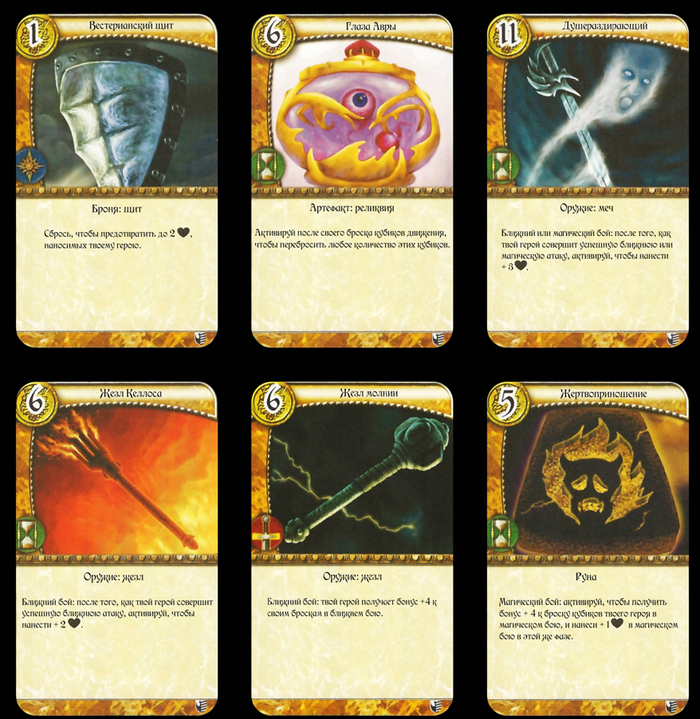 Понравилось так же большое разнообразие наёмников (соратников), и снаряжения ДАЖЕ В базовой коробке, что там будет со всеми дополнениями трудно представить. Ну и отдельно стоить отметить приятный архаичный дизайн и арт у карт (Хотя это уже дело вкуса).