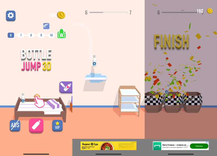 Кликер, где надо довести бутылку до ведра, не уронив её. Звучит тупо, но затягивает. Иногда полки шатаются, иногда предметы мешают, и приходится реагировать моментально. Вроде просто, а бомбит жёстко.