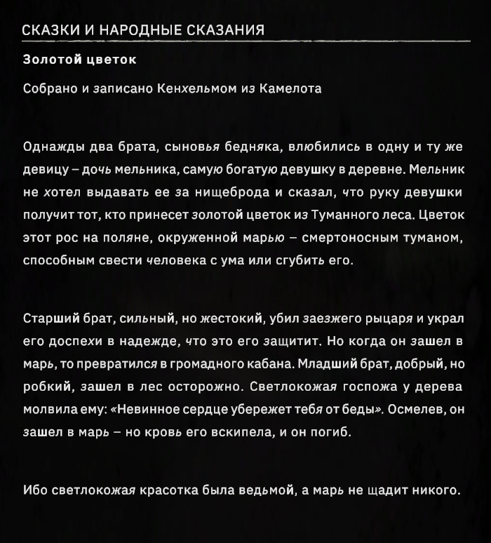 Сейчас прохожу Tainted Grail: The Fall of Avalon. Понравилась сказка из книги.