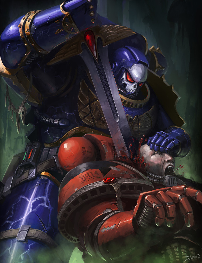 Там, где они сражались, стены сверкали золотом. Оба воина были облачены в гордые доспехи своих легионов, и оба бились за Терру: первый – чтобы защитить ее и умереть за Империум, второй – чтобы покорить ее и принести Империуму гибель.
