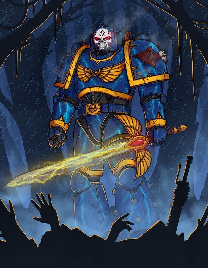 В том бою Малкарион сошелся в поединке с Рагуилом Мучеником, Капитаном Седьмой Роты Кровавых Ангелов. Малкарион и Рагуил уже сражались на ступенях перед Императорским Дворцом во время Осады Терры. Тогда Рагуил был смертельно ранен и его тоже поместили в дредноут. На мой взгляд, их вторая и последняя схватка представляет собой один из самых эпичных поединков в этой художественной вселенной. Возможно, причина в том, что мы видим ее глазами Валкорана, взгляд которого не лишен некоторой поэтичности: