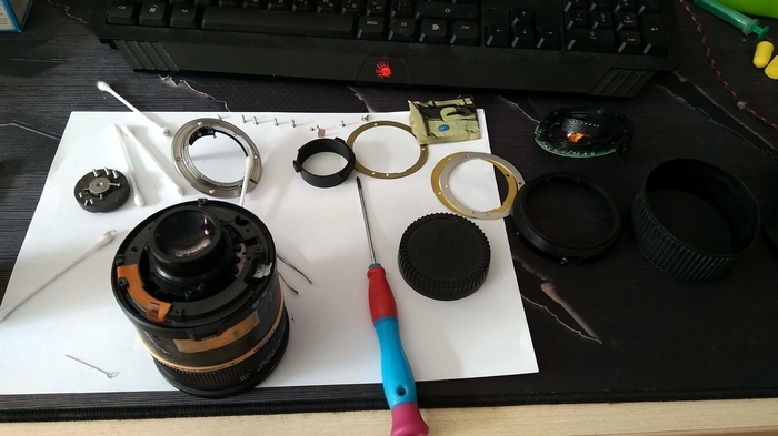 При этом я себе отчет отдаю, что оптически мне никак эту хреновину не вылечить. Но желание порыться внутри современного объектива взяло вверх.