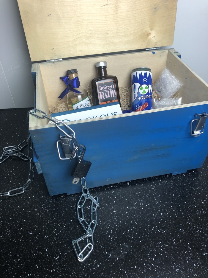 Сам ящик мы украсили цветами синей команды и закрыли на цепь с замком. Подобные ящики есть и в игре, но мы решили сделать своё видение. Ящик получился внушительным и увесистым.