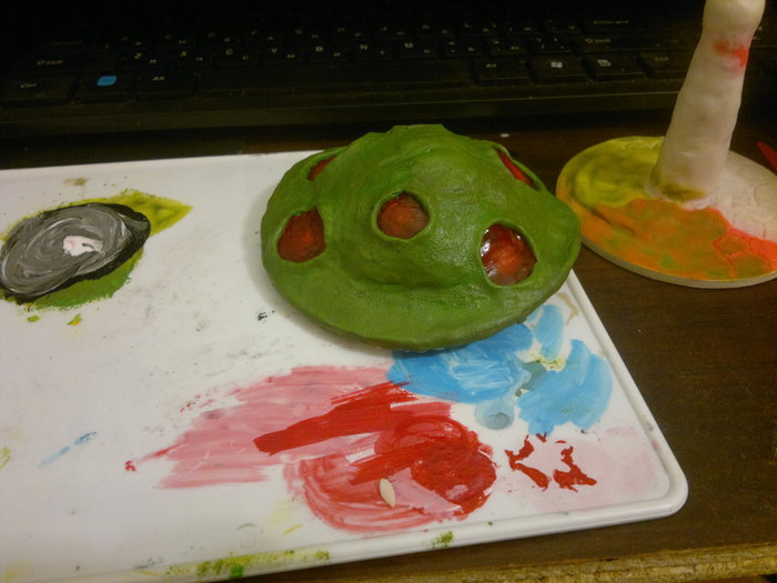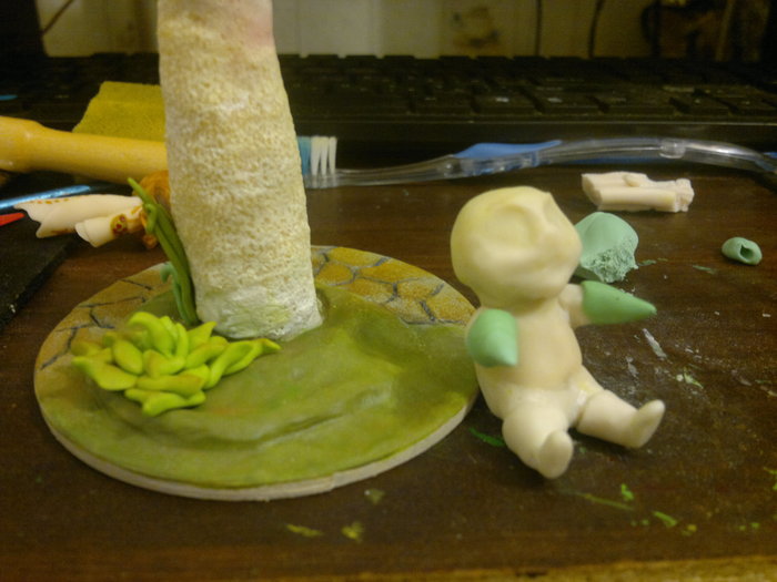 У меня остались куски глины он Нами (прошлая работа), поэтому я пустила ее сюда на каркас. Заодно делам намек на каменную плитку, задаем шершавую структуру.