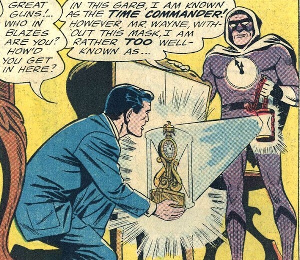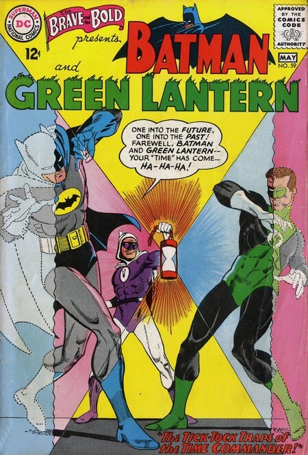 К формату тим-апа возвращается комикс The Brave and the Bold #59. Объявляется Джон Старр, человек, зовущий себя Командиром Времени, и утверждает, что его обвиняют в преступлении, которое он не совершал. Он заглядывает в гости к Брюсу Уэйну и просит помощи у Бэтмэна. Старр знает тайну личности Брюса Уэйна – выведал её с помощью своих темпоральных технологий. Брюс обещает помочь очистить имя Старра...если тот действительно невиновен. Через некоторое время Бэтмэн зовёт на помощь Зелёного Фонаря. “Помоги...я доэкспериментировался с химикатами, меня парализовало, пошевелиться не могу...наполни меня энергией своего кольца, чтобы я вновь стал таким же шустрым и сильным, как прежде! – Да говно вопрос, коллега-герой!”. Да только через некоторое время Зелёный Фонарь узнаёт, что Бэтмэн начал грабить корованы! Фонарь летит в Готэм, заглядывает в гости к Брюсу Уэйну, а тот и не в курсе, что кого-то грабил.