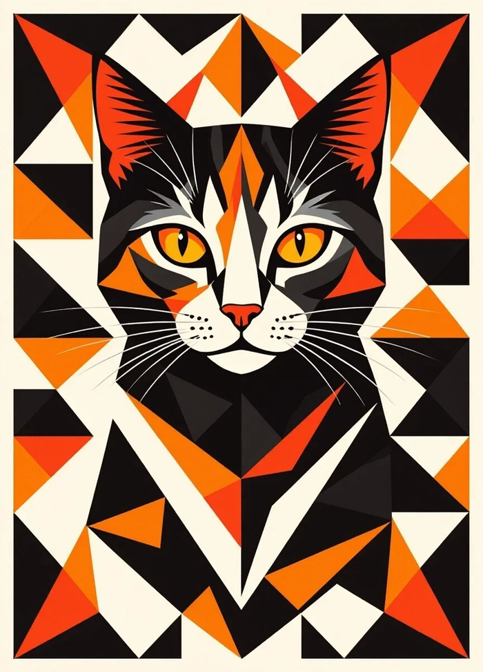 surreal shade (the cat arises from pure geometry, but is not literally depicted).