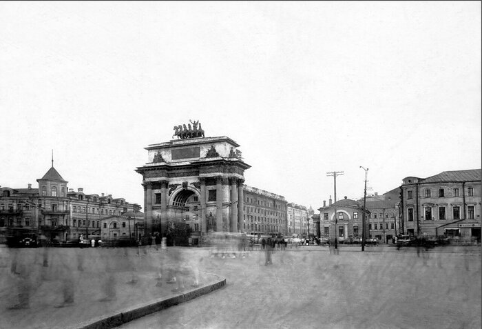 Триумфальная арка находилась недалеко от Белорусского вокзала, но через 5 лет ее разобрали.