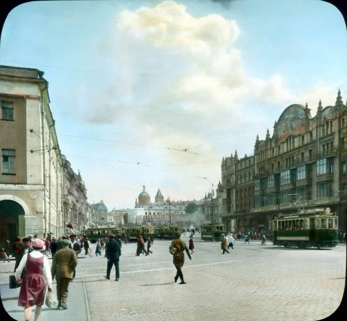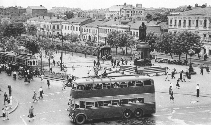 Одна из центральных площадей Москвы, на которой, как и на Красной площади ходили раньше трамваи. На начало 30-х годов трамвай был самым распространенным видом общественного транспорта.