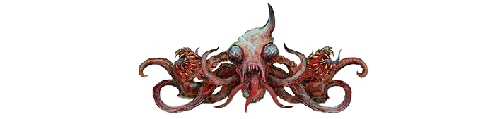 Присев в лестничном пролёте, задыхаясь, с сердцем, колотящимся как бешеное, Баньян наконец смог оглядеться. Коридоры здесь были украшены гирляндами: падуб, испачканный кровью, свисал со стен, рядом капающие венки. Он вглядывался в них, когда понял, что это грубо перевязанные кишки; осознание вызвало рвотный спазм, но в его бурлящем желудке не было ничего, чтобы извергнуть. Моргая сквозь слёзы отвращения, он сделал пару шагов вперёд. Острые шипы кололи руки; у стены гули установили какое-то дерево, будто вырубленное с безумным остервенением из местного леса. На некоторых ветках ещё лежал снег Вечерней зимы. Безглазые, гниющие головы свисали с ветвей, словно игрушки, их кожа посинела от холода.