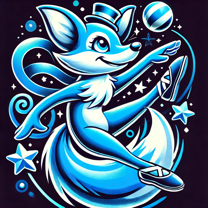 "создай талисман в виде лисенка синего цвета, которого будут звать Антрешка для компании которая занимается конкурсами по хореографии и конкурсами циркового искусства и театрального искусства"
