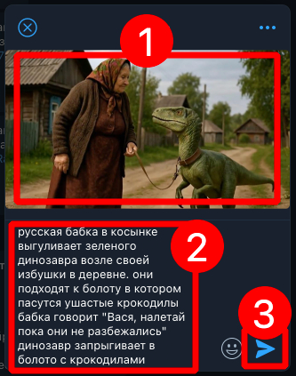 Отправляем боту сделанный скриншот и добавляем текстовое описание того, что должно произойти в следующей части ролика.