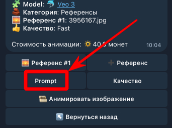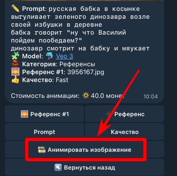 Затем загрузите эти изображения в Veo 3 и "оживите" их, добавив промт (причем промт можно писать по-русски, если работаете через Yes Ai Bot).