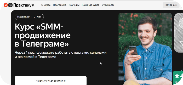 3. Яндекс Практикум — «Нагрузка ~10 часов в неделю. Много новой информации для начинающих без бэкграунда в SMM. Приложение практикума работает отлично.» — Дмитрий Фирстов, Россия.