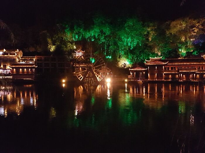 Город действительно поражает атмосферой того самого древнего Китая, кажется что он застыл во времени, иногда возникает ощущение, что это не населённый пункт, а какая-то декорация к историческому фильму. Но по-настоящему красота Фэнхуана раскрывается после заката.