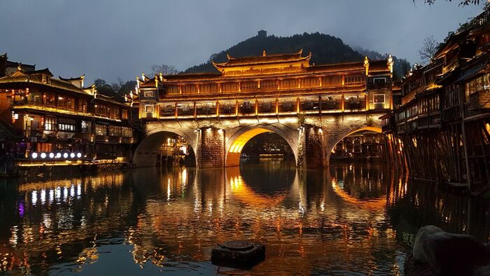 Фэнхуан — древний китайский город, чья история уходит своими корнями в XVIII век. По сути, этот населённый пункт — одна большая достопримечательность. Несмотря на тот факт, что Фэнхуан часто попадает в различные подборки городов для посещения, он остаётся центром притяжения только в рамках внутреннего туризма. Городок провинциальный, иностранцев там мало, так что будьте готовы к тому, что на вас будут таращиться, показывать пальцам и конечно же фоткать исподтишка.