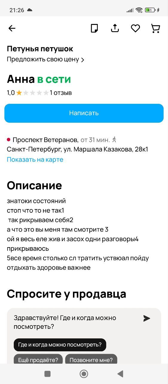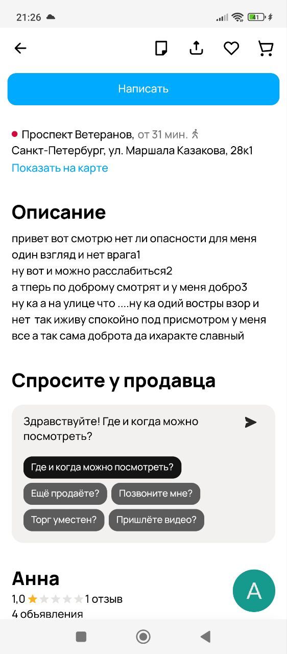 Проверяйте регистрацию аккаунта, с которого пишет потенциальный покупатель. Этому аккаунту, например, был 1 день.
