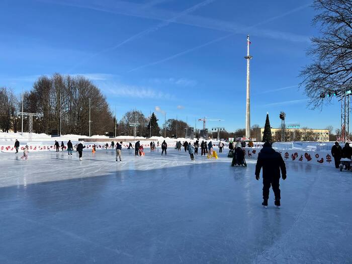 Погода сегодня была замечательная: солнечно и тепло. Узнали, что каток и прокат коньков полностью бесплатные, решили сходить и покататься часик.