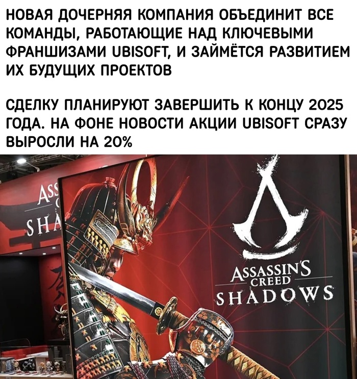 - Но есть поводы и для гордости. Неделю назад вышел Assassin's Creed Shadows, который может похвастаться хорошими результатами по количеству пользователей. 1 млн человек в первые сутки! На дату написания этого поста только на платформе Steam 11 тыс. обзоров, из которых 81% положительных.