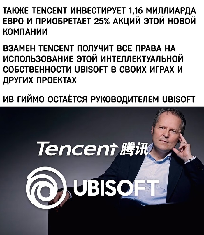 Far Cry, Tom Clancy's, Assassin's Creed. А проспонсирует это все китайский всепоглощатель и гигант индустрии Tencent за инвестирование каких-то «жалких» 1,16 миллиардов евро. И, конечно же, получит за это долю в новом бизнесе.