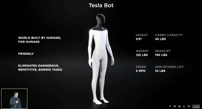 В 2021 году, в рамках мероприятия «День искусственного интеллекта», глава компании Tesla Илон Маск объявил о намерении заняться созданием роботов. Показанный на слайдах робот Tesla должен быть официально представлен уже в текущем году — ожидается, что мы увидим человекоподобного робота, который способен выполнять человеческую работу.