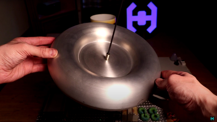 ТОР выполнен по технологии ротационной вытяжки из 1.5 мм алюминиевого листа. Внешний диаметр 25 см, диаметр трубы 6.5 см. Ориентировочная ёмкость 8 рF. Цельная геометрия тора обеспечивает большую эффективность в понижении частоты вторичной обмотки.