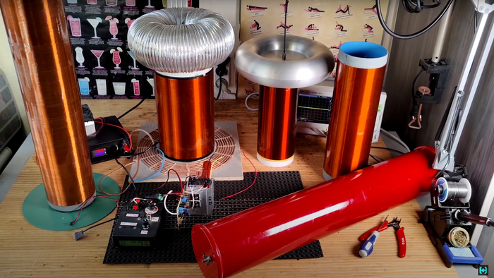 Сегодняшний пост будет посвящен самой продвинутой полномостовой Музыкальной Катушке Тесла. В ходе поста узнаем из каких основных модулей она состоит, как их соединить и настроить. На осциллографе рассмотрим основные управляющие сигналы, посчитаем резонансы и полюса первичной и вторичной обмоток воздушного трансформатора, наглядно увидим работу устройства в различных режимах, а так же спалим жменю транзисторов. В общем все как всегда.