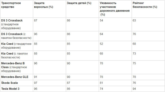 Европейская организация, проводящая независимые тесты на безопасность автомобиля (Euro NCAP) опубликовала результаты испытаний на безопасность и краш-тесты для новых транспортных средств, в том числе Tesla Model 3, которые устанавливают «эталон новых технологий безопасности», согласно данным организации.
