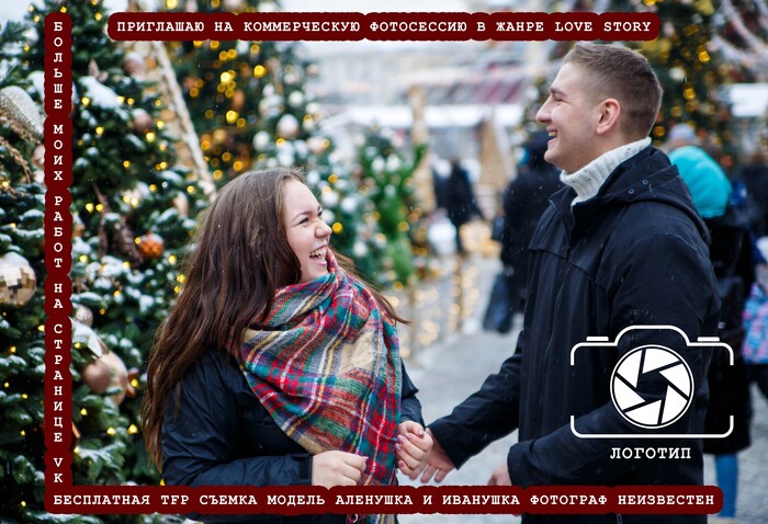 «Уличная модель». Бывает такое, что во время прогулки или по пути домой вы встретили человека, с которым захотелось осуществить определенную задумку. При обоюдном согласии – творите! Если человек далекий от фотоиндустрии, то не пугайте его релизами и договорами, а просто сделайте качественную работу. Конечно, есть вероятность, что после полученного опыта и знаний эта модель захочет стать TFP халявщиком. Будем надеяться, что при таком раскладе модель попадет к знающему фотографу и получит ловушку с водяными знаками.