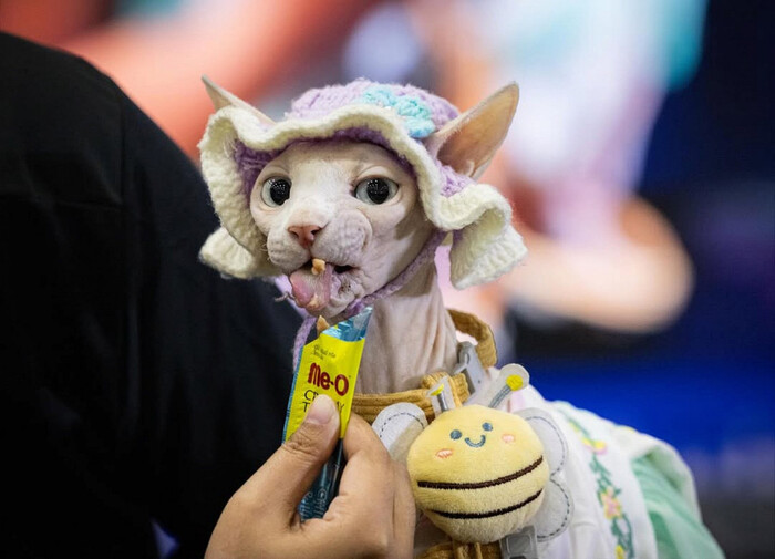 Второй кот Чутиван Диногонг — метис сфинкса и уличного кота — участвовал в состязании впервые. Он занял второе место, съев лакомство за 50,4 секунды.