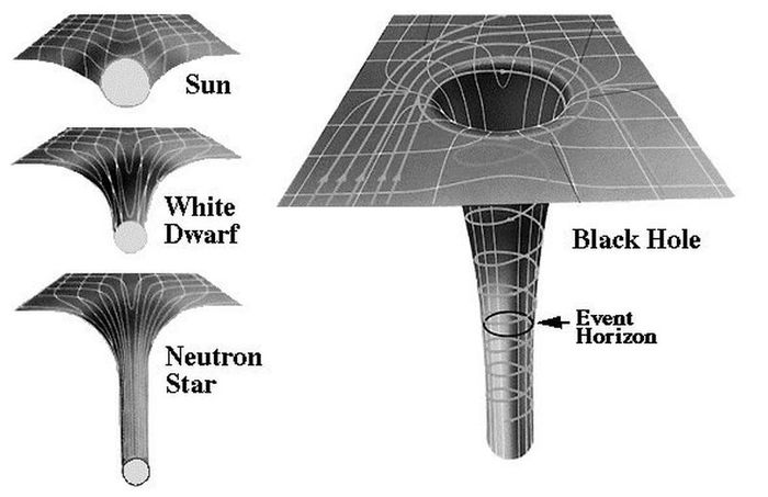Основной идеей черной материи является то, что объект, имеющий определенную массу в пространстве, создает область условного орбитального изгиба, в которой или вокруг которой по той или иной орбите движутся объекты. На примере звезды Солнца наглядно видно: материя под массой звезды получает соответствующий изгиб на основании, которого формируется солнечная система. Научный мир ликует, все довольны, кроме автора статьи…. Данная схема напоминает теорию плоского мира…. Ещё интереснее становится наблюдать за материей, в которой имеется чёрная дыра. Данная модель поражает своей фантазией.