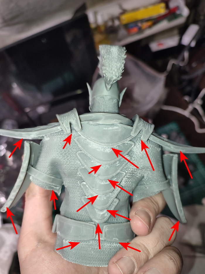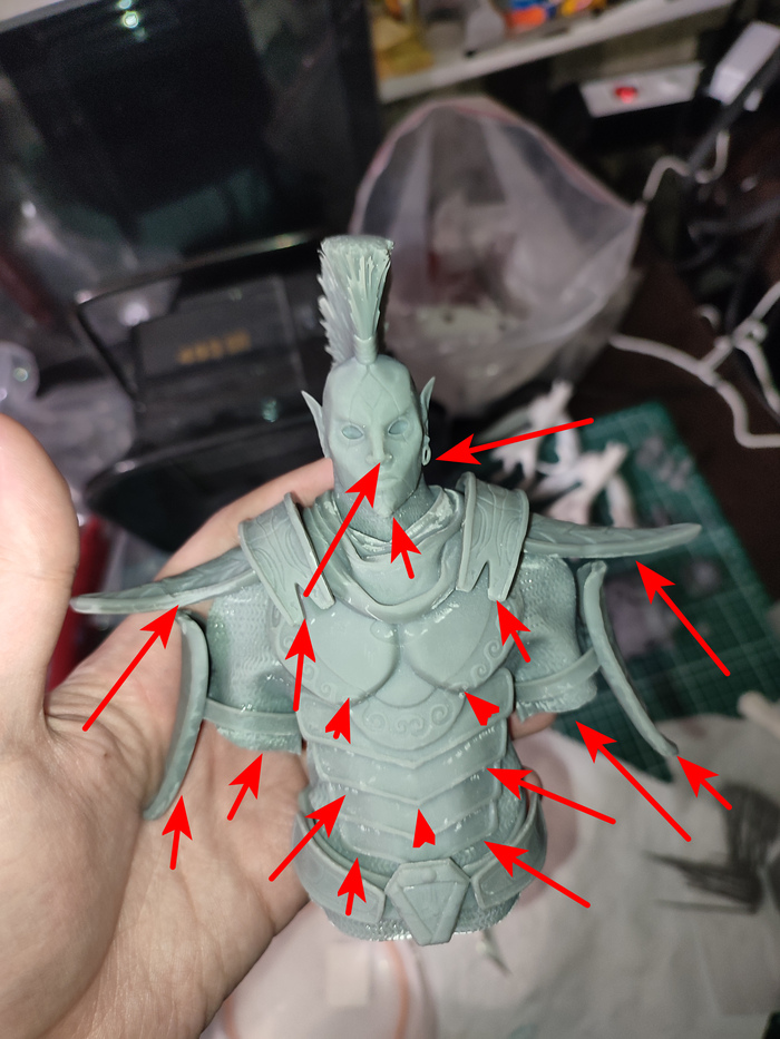 Эти строительные леса после печати отковыриваются, а места стыков тщательно зашлифовываются. Ниже не стратегический план нападения, а все места, которые были аккуратно зашлифованы шлифовальной бумагой и бор-машинкой.