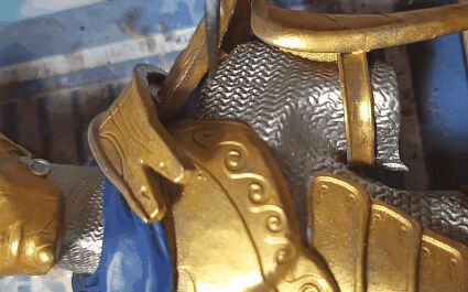 Доспехи решили делать с легкой текстурой ковки. Детально прорисовали кольчугу, гребень, узоры и множество других классных деталей.