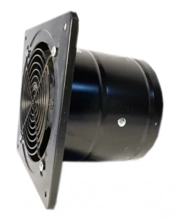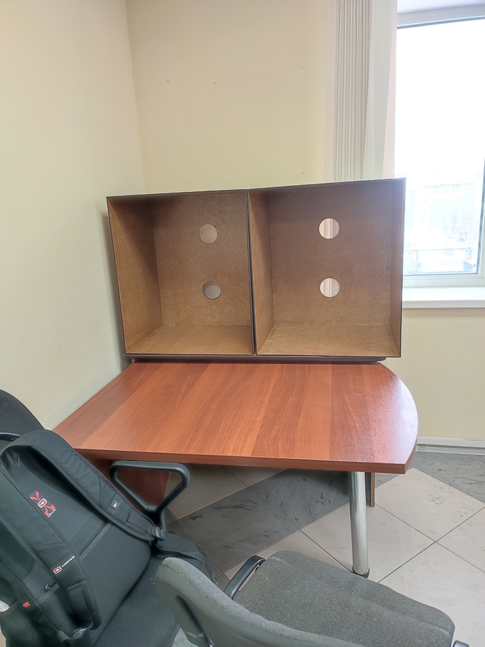Пыль во время шлифовки летит во все стороны, заполняя помещение и ваши легкие. Особенно ваши легкие. Чтобы не цементировать свои органы пылью, заказал на лазерной резке себе пару таких фанерных кубов, куда вставляется вытяжной вентилятор, а от него уже гофротруба в открытое окно.