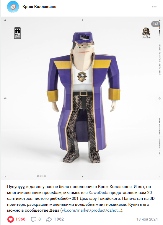 К счастью, недавно начал работать с одним знакомым-студентом, к которому и смог обратиться со своим заказом. Работаем мы до сих пор вот уже почти 3 года - он тоже стал заниматься фигурками под псевдонимом Крнж Коллэкшнс, зацените его работы, кстати, они безумные.