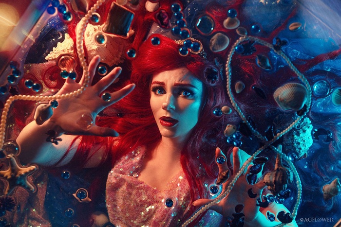 Волосы у морских животных могут быть в двух вариантах. Первый – плотная короткая (как ковер) шерстка, покрывающая все тело и препятствующая потере тепла. Такая, например, у тюленей. Второй — чувствительные усы, вибриссы. Кстати, изначально волосы появились именно как чувствительные усы на морде и только потом распространились по всему телу. Почему у русалочки волосы только на голове – непонятно. Собственно, это не до конца ясно и про людей в целом. Существуют разные гипотезы. Главная, конечно, защита от солнца при прямохождении. Можем предположить у русалочки ту же историю. Если её голова постоянно подвергается воздействию прямых солнечных лучей, то, чтобы не заработать тепловой удар, можно сохранить себе большую шапку волос.