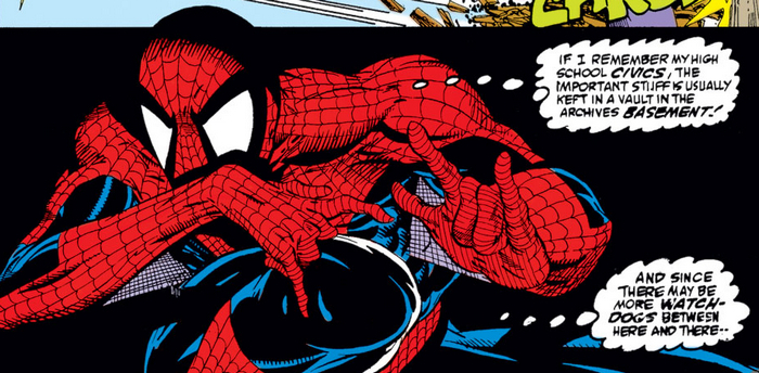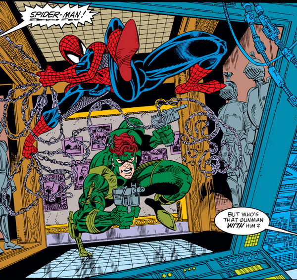 Общий сюжет раскидан между целой кучей тайтлов, в том числе несколькими Паучьими тайтлами, но я перехожу сразу к комиксу Amazing Spider-Man #327 за декабрь 1989 года, от Дэвида Майкелини и Эрика Ларсена (который из-за этой самой раздёрганности может быть слегка вырван из контекста). В пропущенных комиксах Человек-Паук был подвержен воздействию странной энергии, в результате чего приобрёл необычные способности (в частности – умение стрелять энергией, силой мысли менять форму своей паутины, плюс баффы ко всем статам). Но злодеи не дремлют, их план по изведению героев в целом и Человека-Паука в частности через стычки с незнакомыми противниками продолжает разворачиваться. Для уничтожения Человека-Паука с новыми силами нужен кто-то с не меньшим уровнем силы. Выйти против Человека-Паука вызывается Магнето.