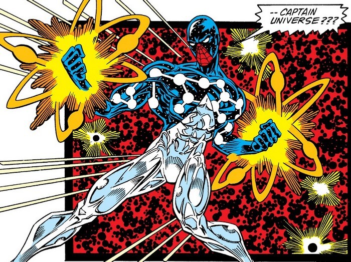 И вот, у Питера Паркера срабатывает Паучье Чутьё, и на него нападает Гравитон. Вякнув «Некогда мне с тобой возиться», Спайди побеждает злодея уровня Мстителей одним энергетическим залпом. И-и-и Себастьян Шоу приказывает Любишу жахнуть из своего прибора. Делать нечего – Любиш стреляет. Но вместо того, чтобы отключить космические силы Человека-Паука, прибор полностью их разблокирует, и Спайди превращается в Капитана Вселенную! В куче игр про Человека-Паука у него есть такой скин, и вот, пожалуйста, его происхождение. Получив Космическую Мудрость, Спайди узнаёт, что сила Капитана Вселенной выбрала его как раз для того, чтобы он остановил Три-Стража – робот собирается уничтожить атомную электростанцию, что приведёт к трагедии. И действительно – робот уже приближается к электростанции, уже одну градирню разломал. Капитан Вселенная (Капитан Паук? Человек-Вселенная? Человек-Капитан?) атакует робота – но магия Локи защищает его от энергетических залпов. Тут уж даже Себастьян Шоу за голову хватается – он не планировал массовый экстерминатус! Шоу запускает систему самоуничтожения Три-Стража, но робот её преодолевает. Впрочем, это даёт Человеку-Пауку время для того, чтобы вложить всю силу Капитана Вселенной в одну энергетическую атаку и жахнуть так, чтобы от Три-Стража остались одни очень маленькие осколки. Себастьян Шоу после этого бежит из страны, а Спайди с удовлетворением осознаёт, что избавился от космических сил. . Он возвращается домой к жене, и к ним гости заваливается Флэш Томпсон с новой девушкой – Фелисией Харди!