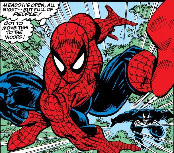 Человек-Паук отправляется в Центральный парк, где Веном назначил ему встречу, и там начинается сражение. Сражение непростое, ведь на Венома не реагирует Паучье чутьё! Веном пытается удушить Человека-Паука своей чёрной жижей – но Стенолаз вырывается и заманивает Венома подальше от посторонних. Заканчивается сражение, когда Веном бросает в Человека-Паука такси. Спайди-то уворачивается, но такси врезается в ехавшую по мостику над прудом карету и из неё выпадает ребёнок. Тут уж даже Веном понимает, что цель не оправдывает средства и потери бывают недопустимые. Веном спасает ребёнка и удирает, пока Спайди доставляет в менее опасное место остальных пассажиров кареты. Но узнав о заварушке в парке, туда отправляются по канализационному тоннелю Стикс и Стоун!
