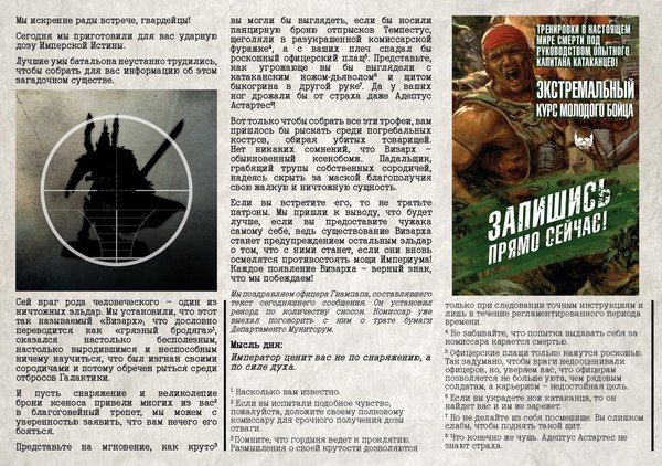 С другой стороны, вражеские солдаты: сборище мутантов, предателей, подобных скоту тварей и психопатов, не заслуживающих называться армией. И не идущих ни в какое сравнение с Астра Милитарум.