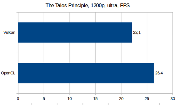Да что ты будешь делать? Сливается Vulkan даже OpenGL, хотя фризов в целом поменьше. Можно списать на то, что поддержка Vulkan в игре на стадии беты. Разработчики честно предупреждают о возможных проблемах с производительностью. Ну а хотя, может немного изменить условия тестирования?