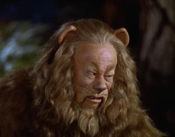 Берт Лар, сыгравший Трусливого Льва, также прошел через изрядную долю страданий. С этого портрета кажется, что его костюм невероятно мягкий. Из бархатистой шерсти животных, покрывает почти все его тело, идет вверх и вокруг его головы. Однако он был сделан из настоящей львиной шкуры, и весил он примерно 90 фунтов. Это не позволяло сделать хорошую вентиляцию, и в сочетании с интенсивными горячими огнями, под которым снимались все актеры, Лар обильно потел в течение всего рабочего дня. На самом деле все было так плохо, что два помощника по производству получили задание сушить костюм каждую ночь и подготавливать его для Лара, который снова потел в нем на следующий день. на макияж трусливого льва шло так много времени и его так сложно менять, что Лару изначально не разрешали есть в перерывах. И сначала он был согласен на просьбу, и питался молочными коктейлями и супом, но когда съемки затянулись, он потребовал, чтобы его макияж переделывали после обеда.