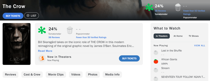 Ремейк "Призрака в доспехах" Сандерса был недооценён и несправедливо обвинён в "отбеливании", когда история прямо критиковала это явление, но здесь дело обстоит иначе. Этот "Ворон" будет переоценён, если его вообще кто-нибудь вспомнит. После всех этих лет обсуждений он, вероятно, был обречён разочаровать, но даже если бы оригинал с Брэндоном Ли никогда не существовал, новый фильм всё равно бы это сделал.