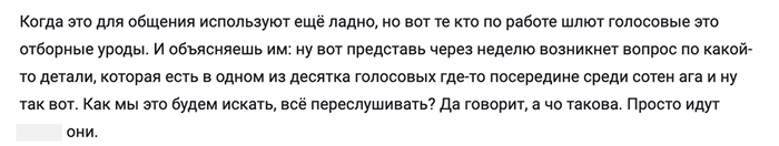 Проблема простая: голос — это плохо структурированная информация. Его нельзя быстро пробежать глазами, найти важное по слову или переслать фрагмент, не вырезая всё подряд.