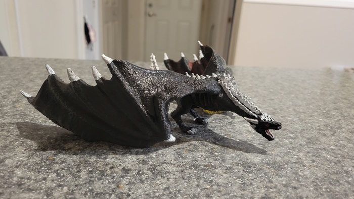 Вечером раскрасил дракона, напечатаного на принтере. Вдохновлялся расцветкой чёрного дракона из Героев меча и магии третьих, теперь на ваш суд :)