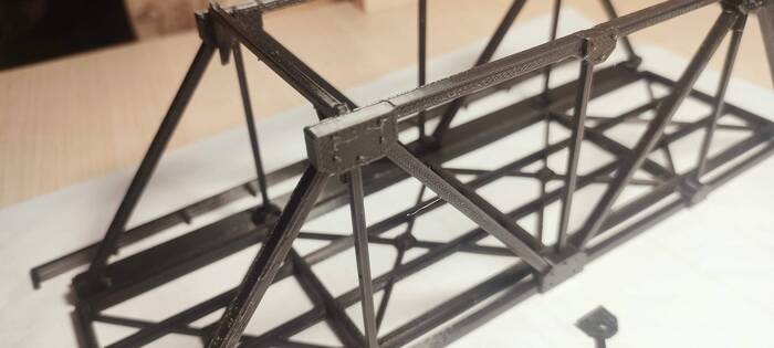 Это мой первый опыт, и следовало бы зашпаклевать там где неприлично слои выделялись и мешали краске равномерно лечь. Возможно, при печати более тонким соплом, эти изъяны не так бы выделялись.. Зато на деталях некая рельефность получилась, словно сварные швы. Конечно же в реальности мосты так не выглядят. Болтовые соединения пропечатались достаточно четко.