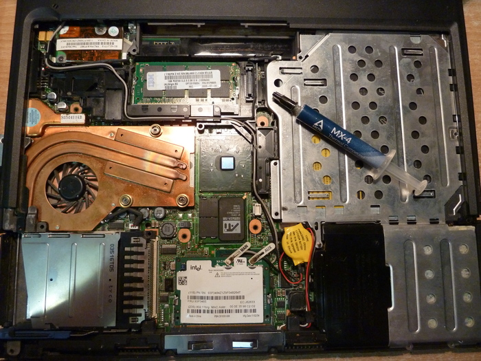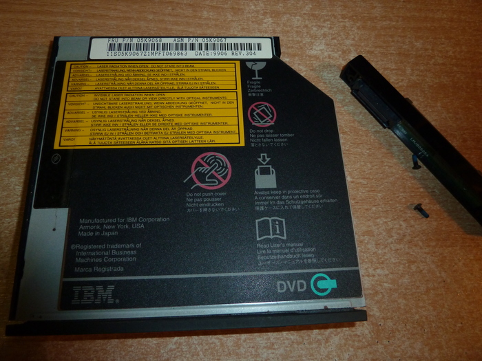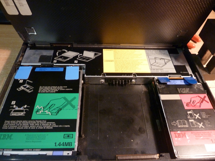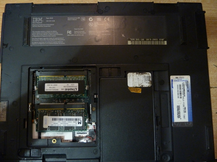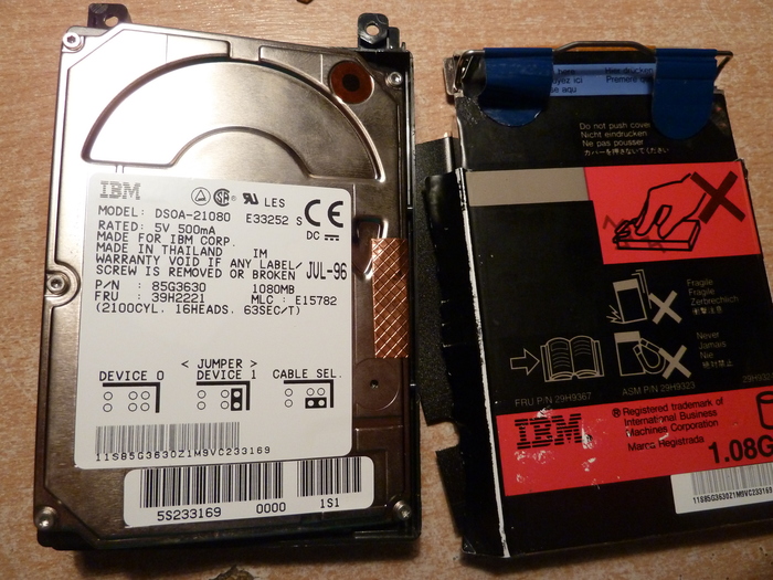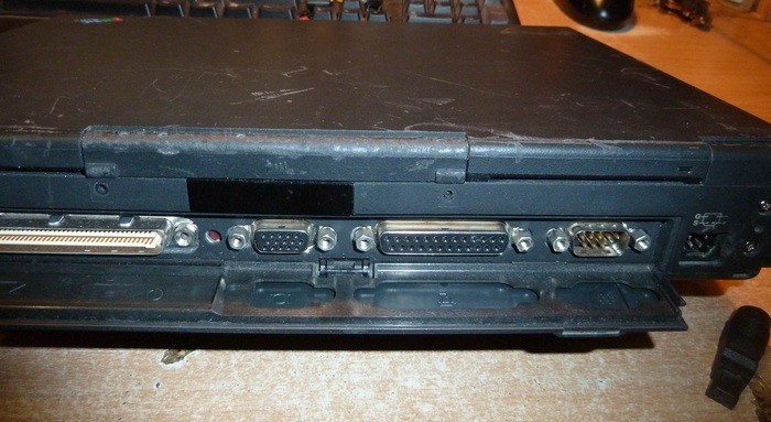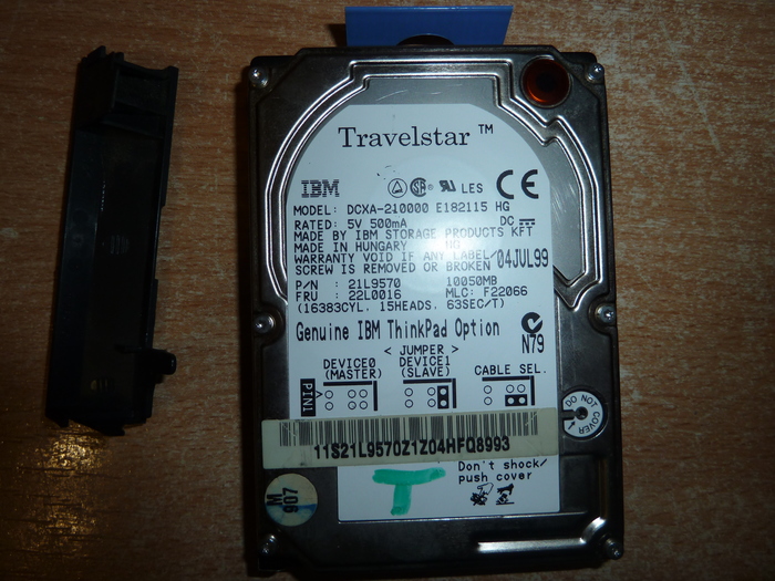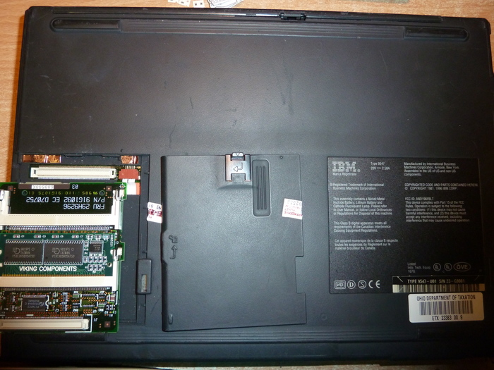 Снизу, с отрытым отсеком для планок ОЗУ, устанавливающихся через плату-переходник. В нижнем углу видна наклейка "OHIO DEPARTMENT OF TAXATION"😀 Ничего интересного с диска вытащить так и не смог, все давно перезаписано(